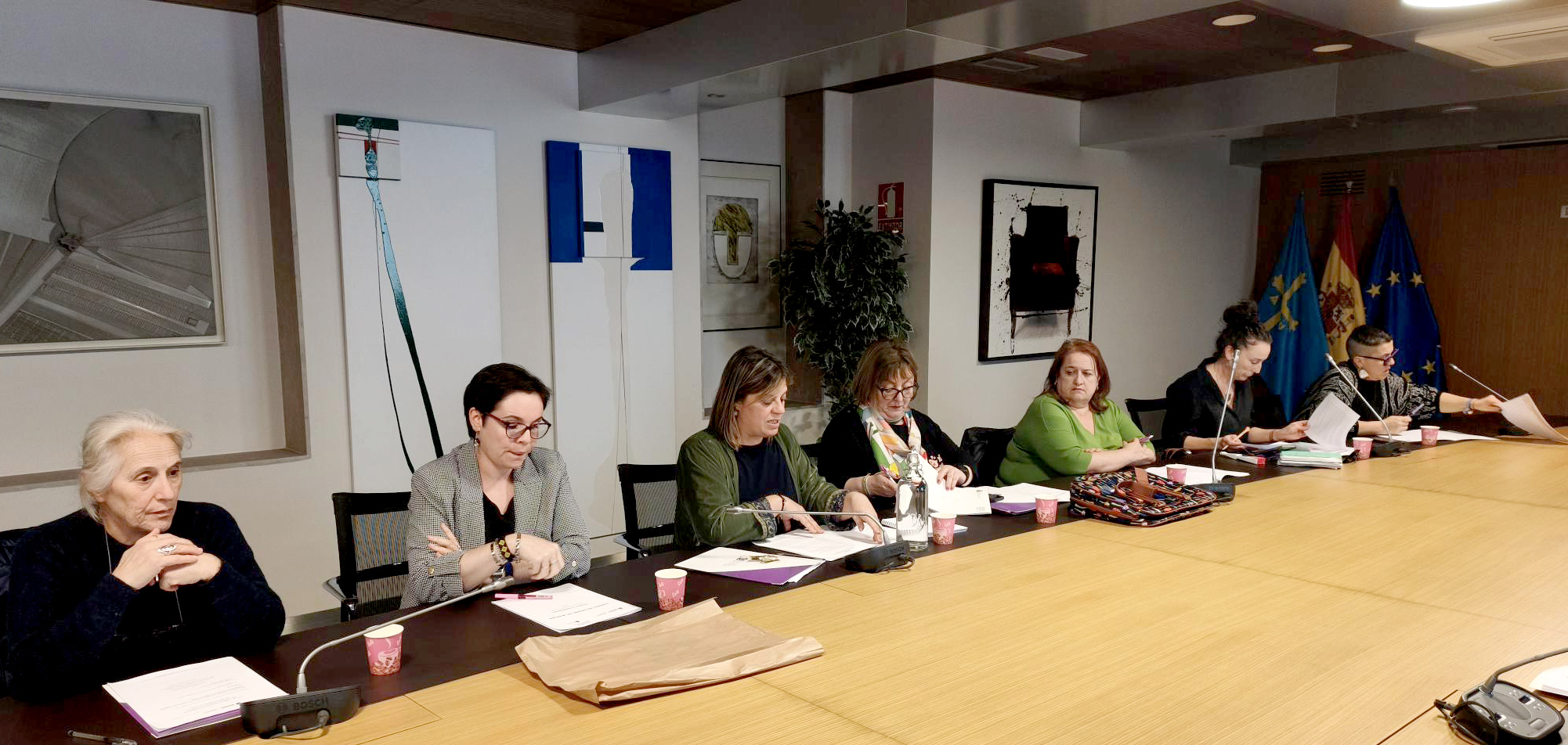 * En el centro de la imagen, la vicepresidente, Gimena Llamedo, y la directora general de Igualdad, Vanesa Fernández, en un momento de la reunión del Consejo Asturiano de la Mujer.