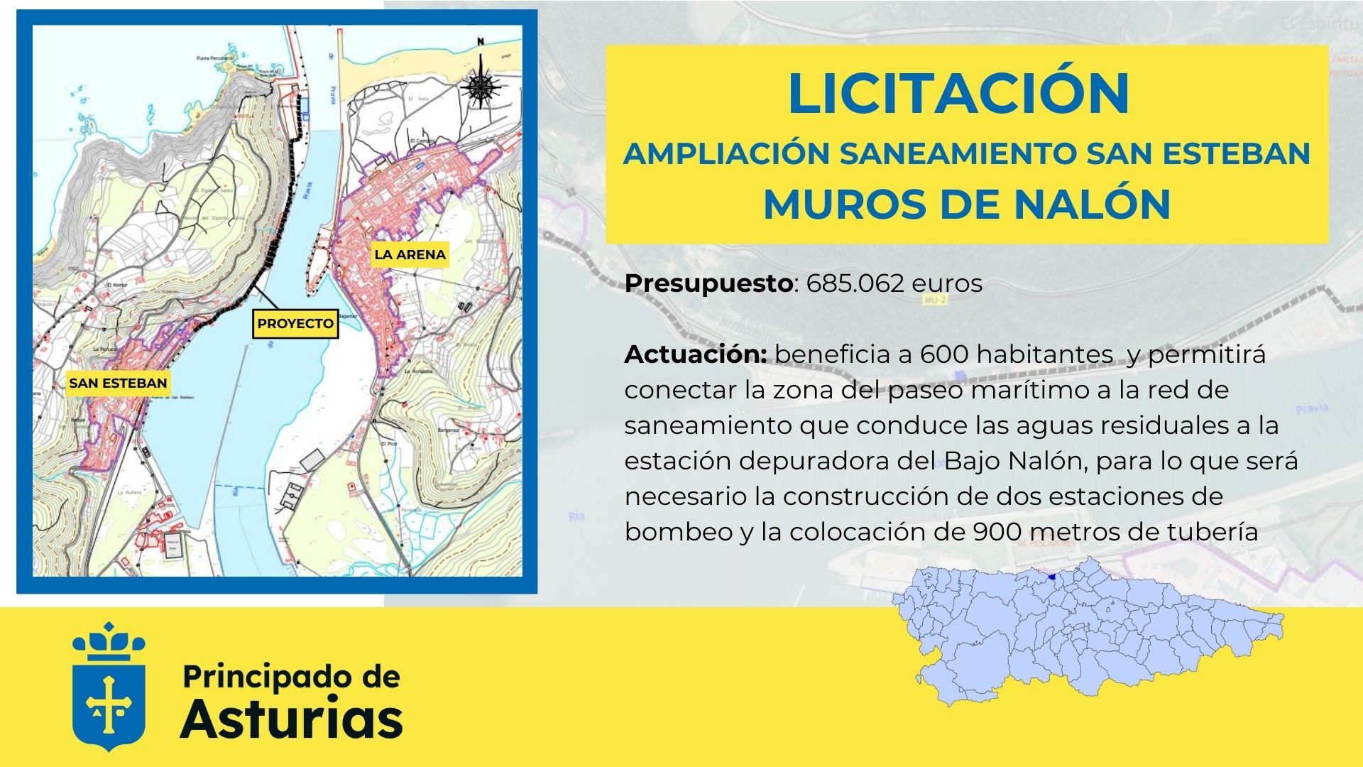 La obra, que beneficiará a unas 600 personas, garantizará un tratamiento adecuado de los vertidos de varias viviendas del paseo marítimo, así como de las piscinas municipales y de un restaurante situados en el entorno del puerto. Las aguas residuales se conducirán desde la zona del paseo marítimo hasta la red de saneamiento de San Esteban y, de allí, a la estación depuradora del Bajo Nalón, en Soto del Barco, para su tratamiento.