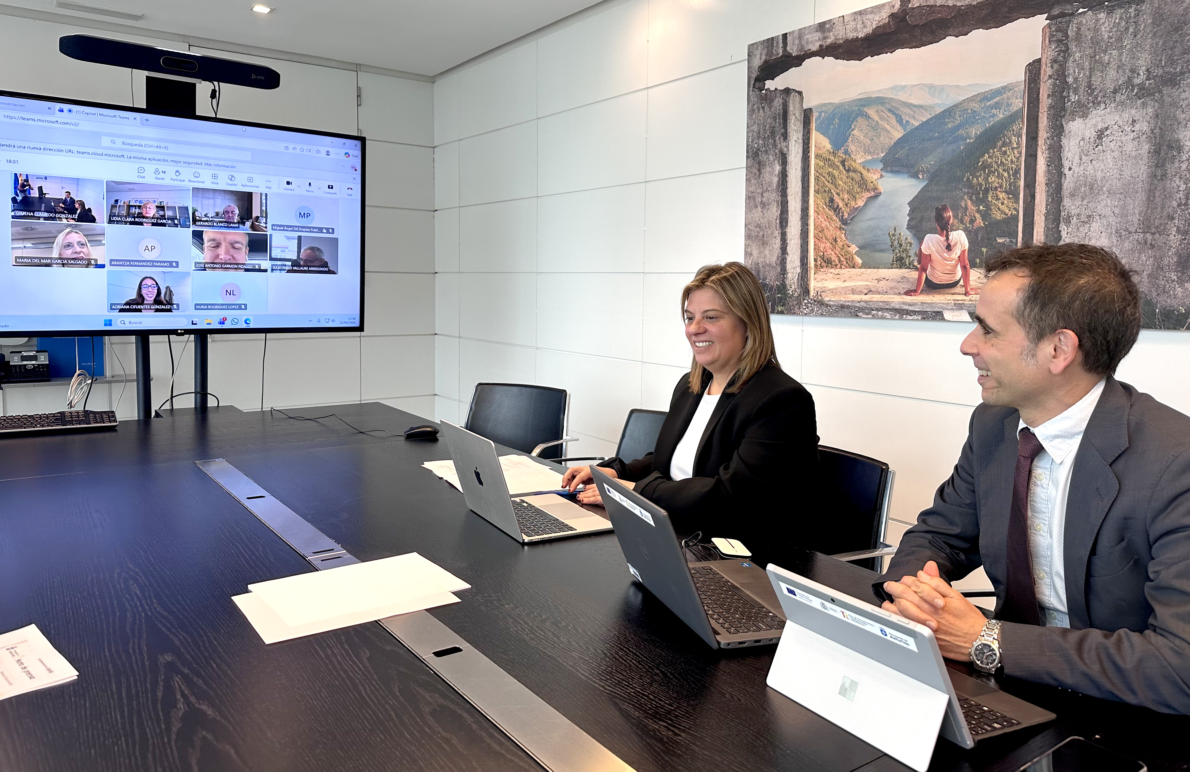 * En la imagen, la vicepresidenta del Principado, Gimena Llamedo, y el director general de Estrategia Digital e Inteligencia Artificial, Javier Fernández, en la reunión telemática del Comité de Estrategia Digital y Seguridad de la Información del Principado de Asturias.