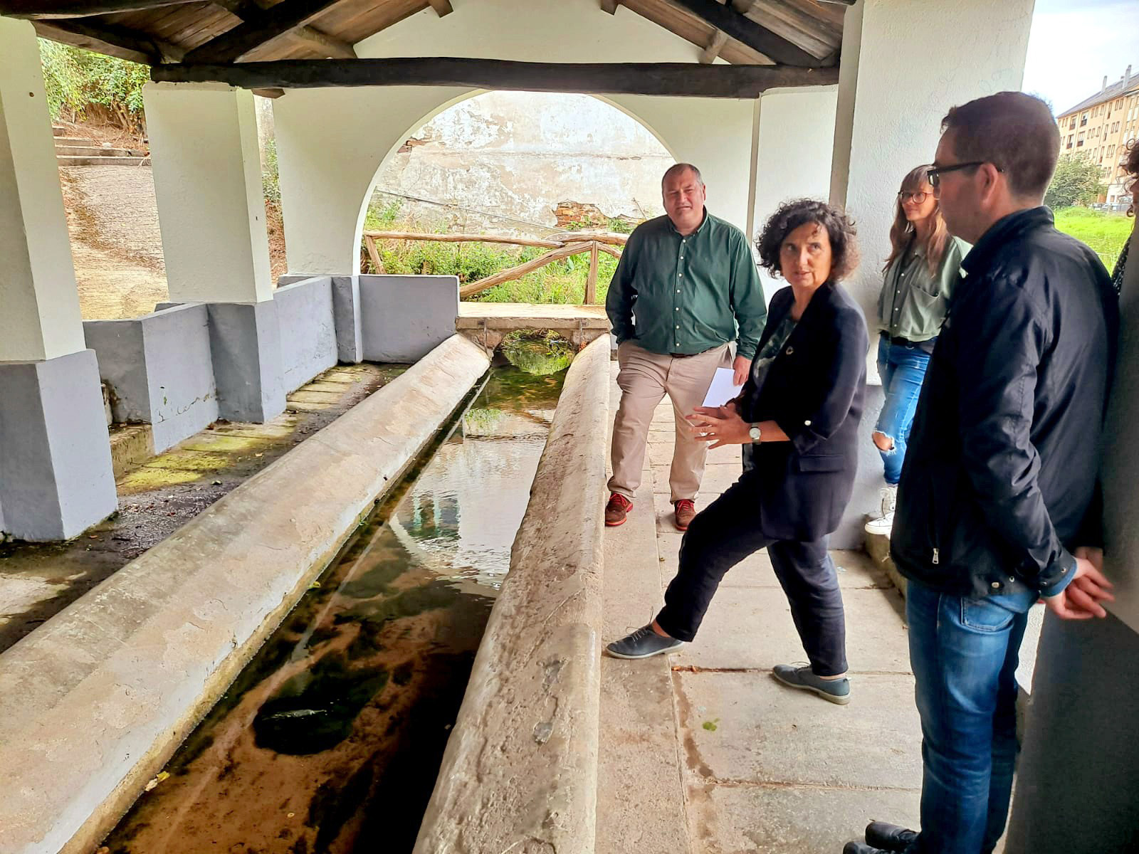 • La consejera de Cultura, Berta Piñán, visita el albergue y el lavadero de la capital veigueña, cuya rehabilitación cofinanció el Gobierno de Asturias