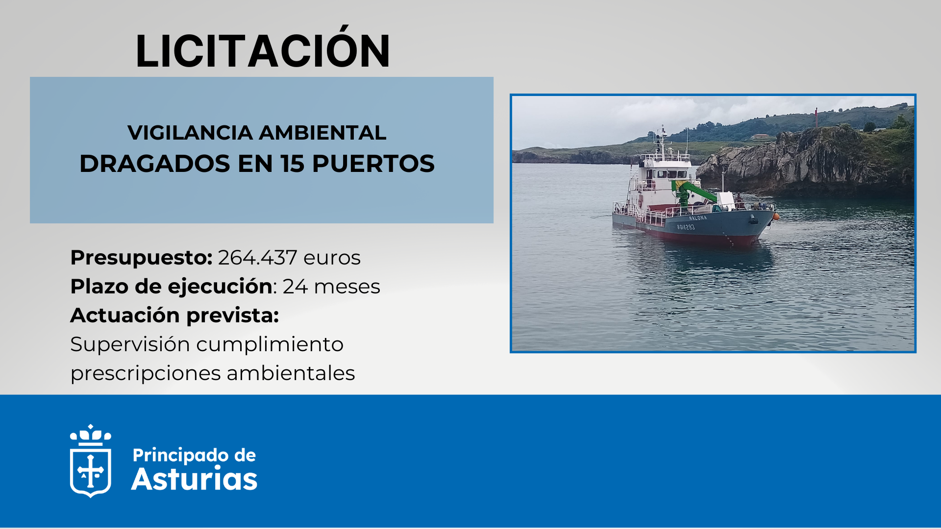 El Gobierno de Asturias ha licitado el servicio de asistencia técnica para la vigilancia ambiental de las operaciones de dragado y el seguimiento de las zonas de vertido que se realizarán en 15 puertos autonómicos. La inversión prevista asciende a 264.437 euros y el plazo de ejecución del servicio será de 24 meses.