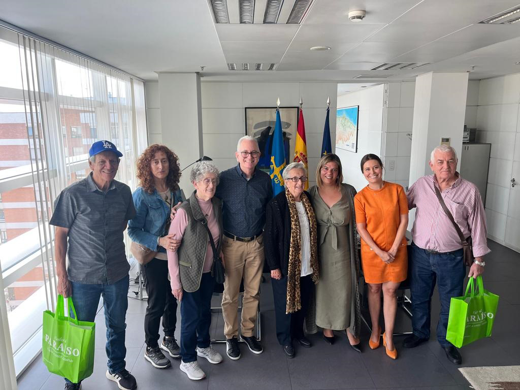 En la imagen, de izquierda a derecha, los participantes en el Programa Añoranza 2023 Francisco Sieiro Fernández; Daniela y su madre Anita Fernández; José Manuel con su madre Libertad Pérez; la vicepresidenta Gimena Llamedo; la directora general de Emigración y Retorno, Olaya Gómez y Amado López, participante también en el programa.