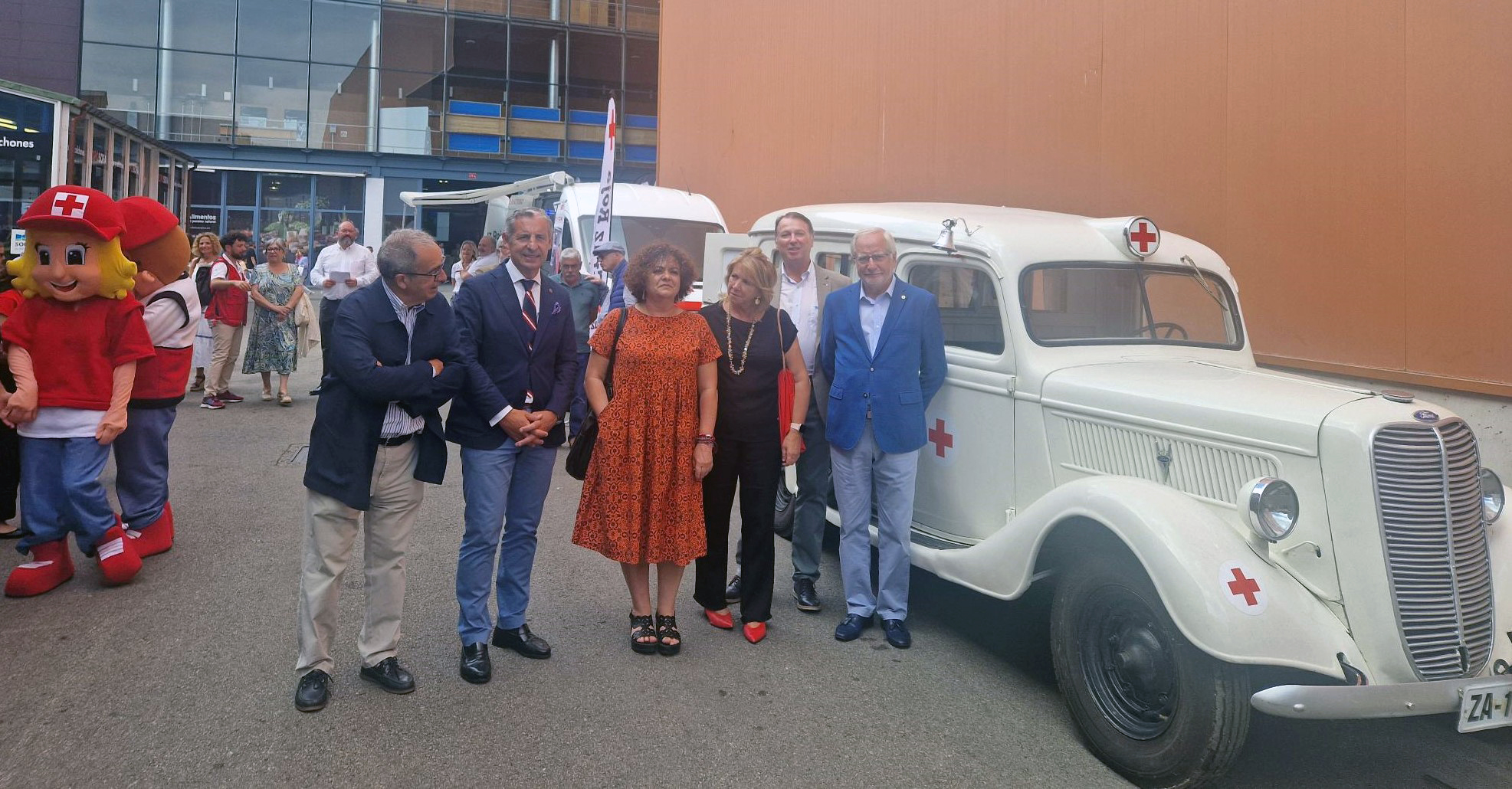 La consejera de Derechos Sociales, Marta del Arco, en la conmemoración del Día de la Cruz Roja en la Feria Internacional de Muestras de Asturias (Fidma). En la imagen, junto a un vehículo clásico de Cruz Roja.