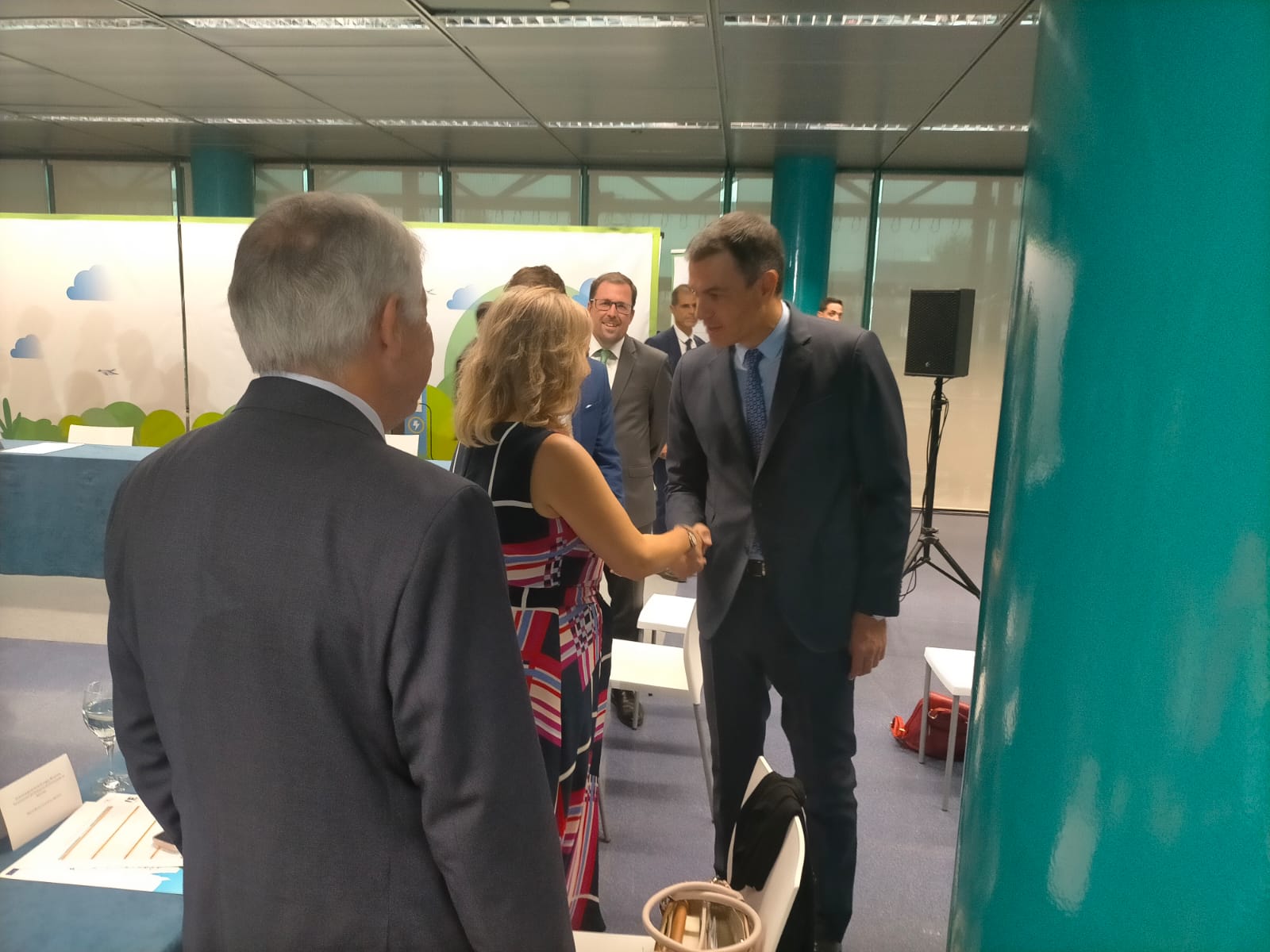 La directora general de Energía, Belarmina Díaz, saluda al presidente del Gobierno, Pedro Sánchez, durante la reunión constitutiva del grupo de trabajo de infraestructuras de recarga del vehículo eléctrico, al que también asistieron la ministra de Transición Ecológica y Reto Demográfico, Teresa Ribera, la secretaria de Energía, Sara Aagesen, y el secretario general de Industria y de la Pequeña y Mediana Empresa, Raúl Blanco.
