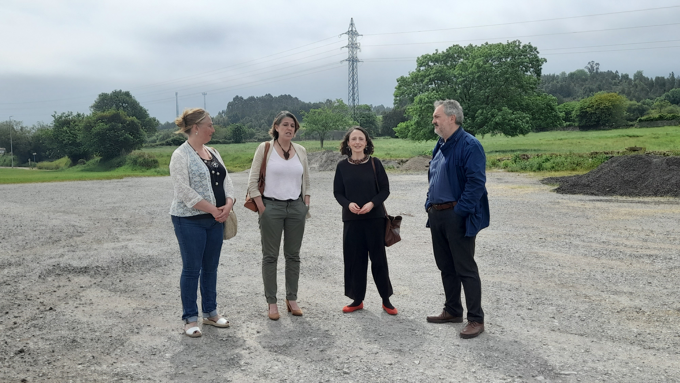 De izquierda a derecha, Blanca Gayo, concejala de Urbanismo; Sandra Cuesta, alcaldesa de Colunga; Melania Álvarez, consejera de Derechos Sociales y Bienestar, y Fermín Bravo, director general de Vivienda, en la zona en la que se construirán las viviendas