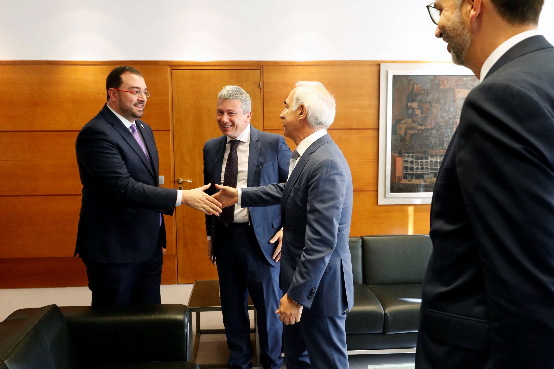 El presidente del Principado de Asturias, Adrián Barbón, ha recibido al presidente de Vodafone España, Antonio Coimbra, que ha acudido acompañado por el el director territorial Norte, Francisco Vallejo y el responsable de Vodafone en Asturias, Juan Manuel Navarro.