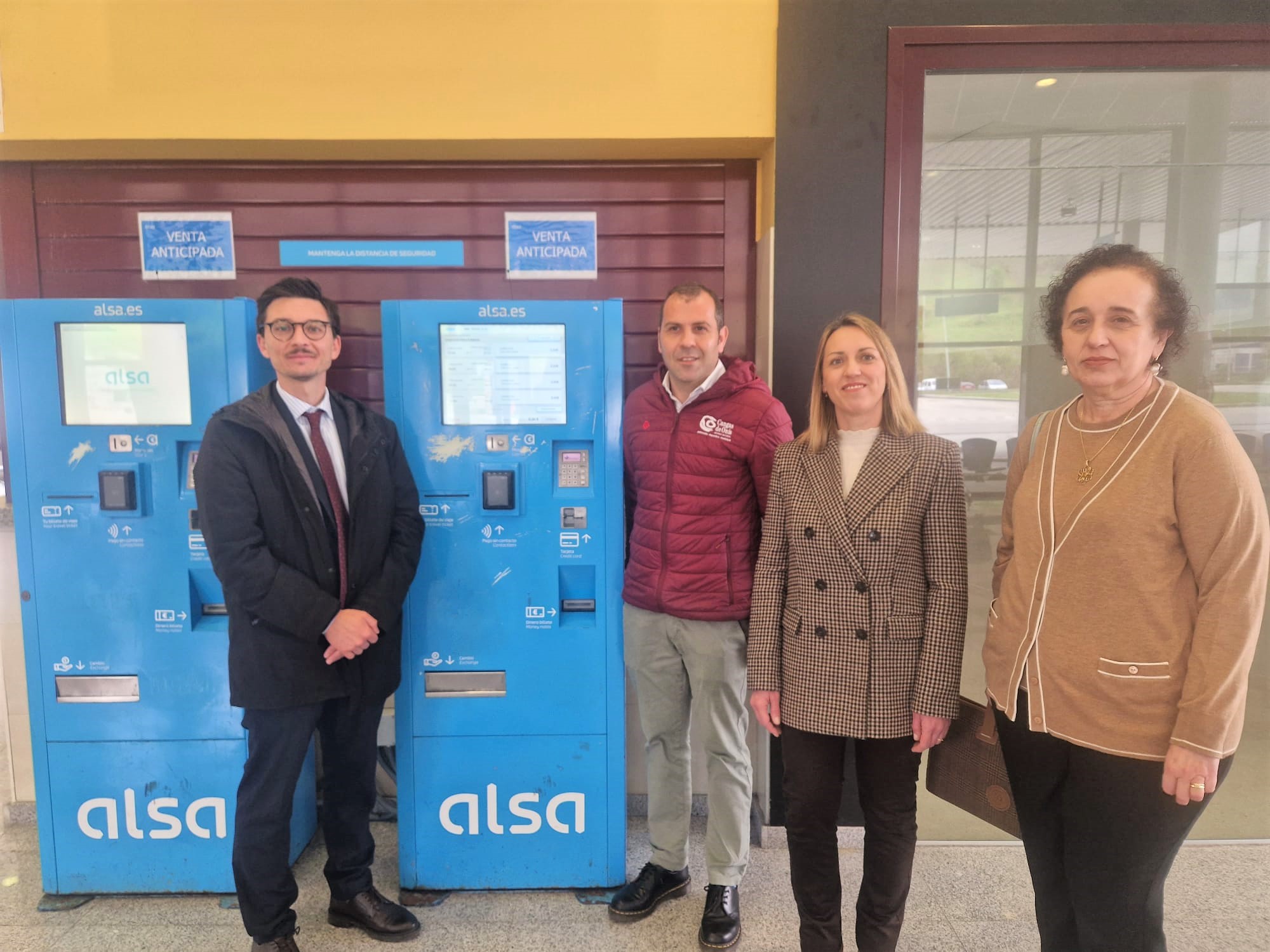 *En la imagen, de izquierda a derecha, el gerente de Alsa, Javier de los Ríos; el alcalde de Cangas de Onís, José Manuel González; la directora general de Transporte, Arantza Fernández, y la directora técnica del Consorcio de Transportes de Asturias (CTA), Radisbunda López.