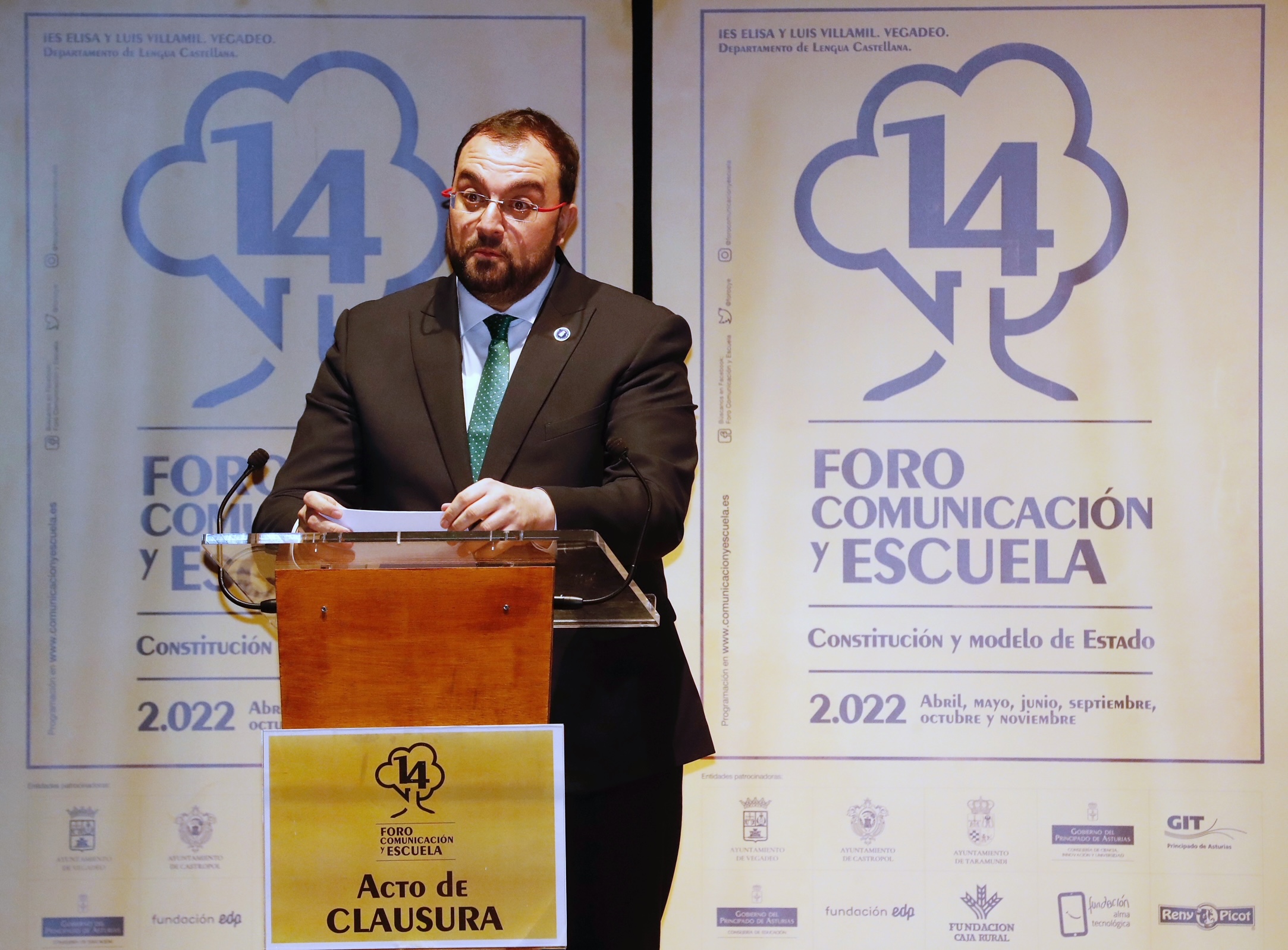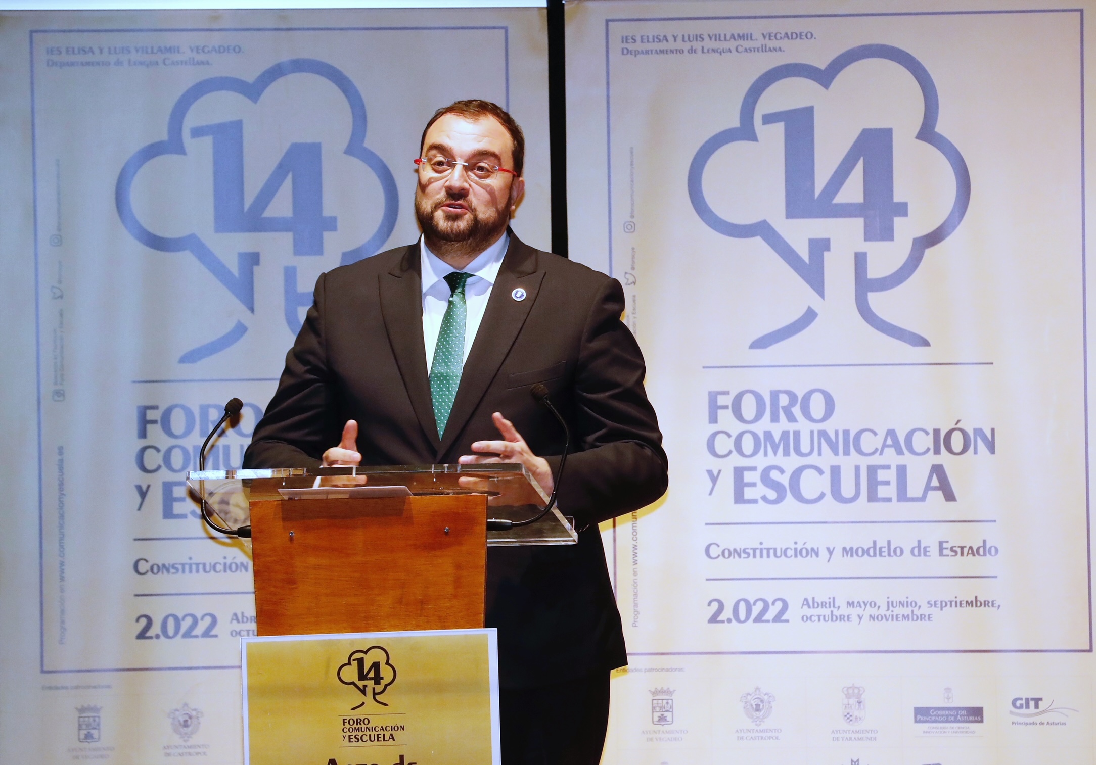 El presidente del Principado de Asturias, Adrián Barbón, ha defendido hoy "la necesidad de apostar por la escuela como foco vertebrador y dinamizador del medio rural". "Las comunicaciones, la cobertura digital y, sobremanera, las escuelas son imprescindibles para asegurar su supervivencia y plantar cara al reto demográfico", ha subrayado durante su intervención en el acto de clausura del XIV Foro Comunicación y Escuela, organizado por el departamento de Lengua Castellana del IES Elisa y Luis Villamil de Vegadeo.