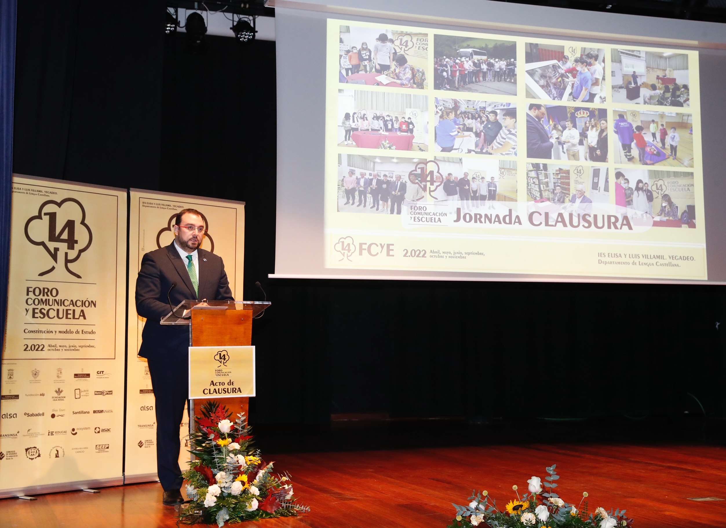 El presidente del Principado de Asturias, Adrián Barbón, ha participado hoy en la clausura del XIV Foro Comunicación y Escuela, organizado por el departamento de Lengua Castellana del IES Elisa y Luis Villamil de Vegadeo.