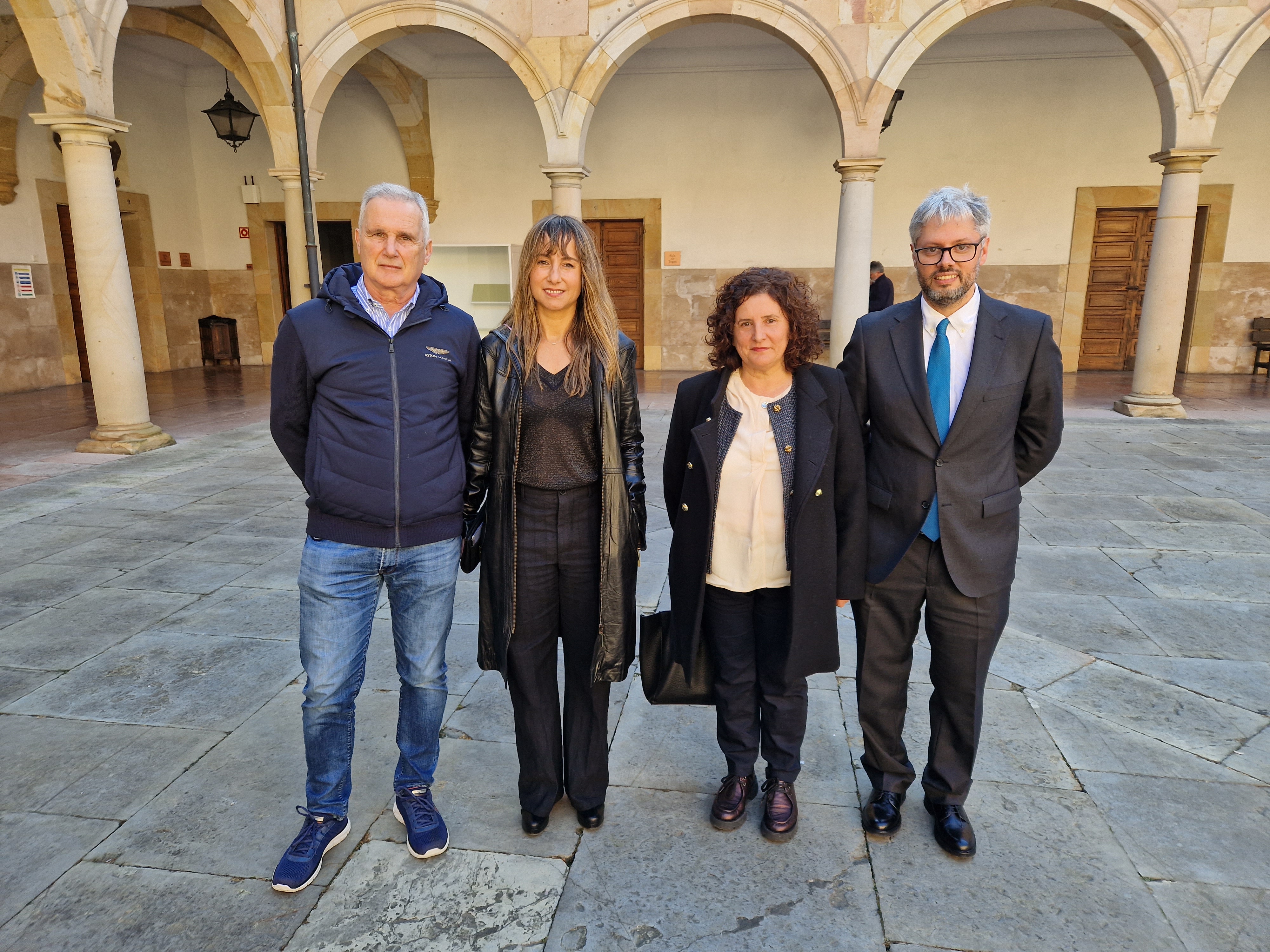 ** Pie de foto: de izquierda a derecha, el catedrático emérito de la Universidad de Oviedo Francisco Bastida, la periodista Ana Pardo de Vera, la viceconsejera Beatriz González y el director de la Cátedra Rafael del Riego, Abel Arias Castaño.