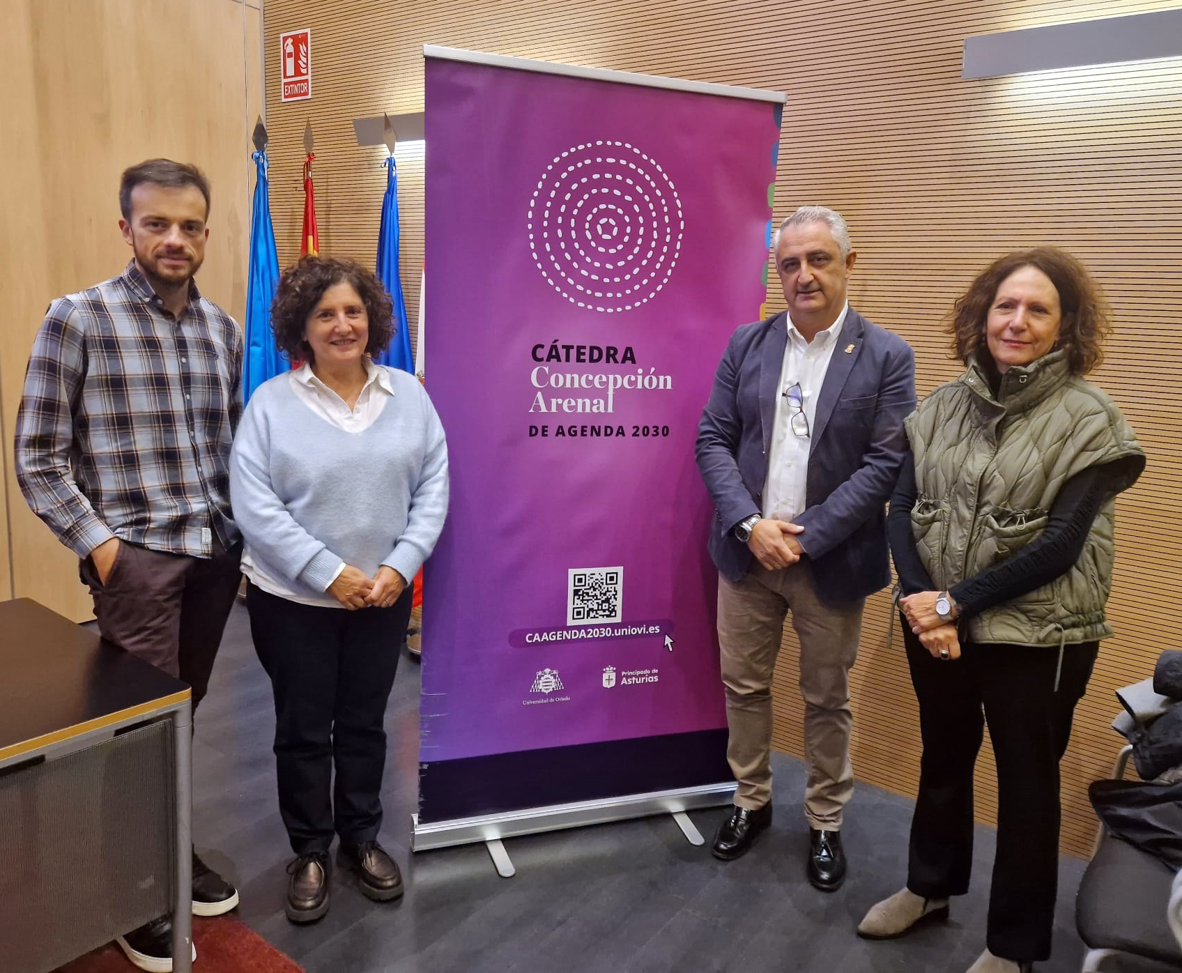 *De izquierda a derecha, el director general de Agenda 2030, Juan Ponte;la viceconsejera de Derechos Ciudadanos, Beatriz González Prieto; el alcalde de Carreño, Ángel García Vega, y la directora de la Cátedra Concepción Arenal, María Rosario Alonso Ibáñez.
