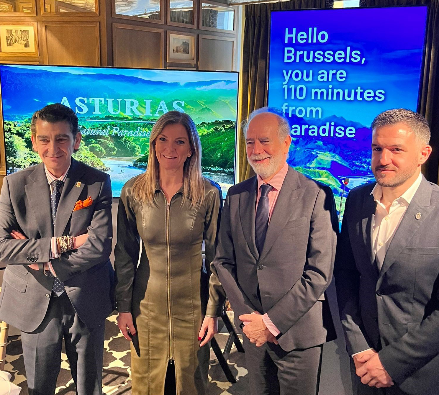 Graciela Blanco ha sintetizado la campaña con la frase “el Paraíso Natural a dos horas de Bruselas”, ante un gran panel con el lema El paraíso, a 110 minutos de Bruselas. La viceconsejera ha repasado en su intervención los principales activos turísticos del Principado, entre los que ha destacado “su alta calidad medioambiental y su singularidad paisajística, que combina costa y montaña”, además del potencial para el turismo deportivo y de aventura que tiene la comunidad. También ha hecho especial mención al ecoturismo, y ha recordado que Asturias es el “refugio donde habitan los osos pardos salvajes” en Europa Occidental.