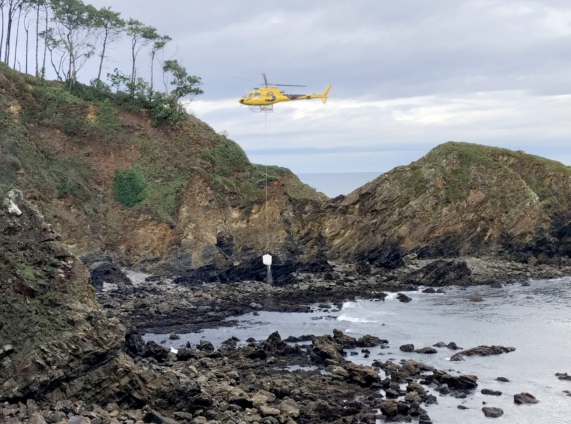 Para resolver estas complicaciones, se acordó llevar a cabo la operación por vía aérea, para lo cual se articuló un dispositivo en el que participaron un técnico arqueólogo del Servicio de Patrimonio Cultural, miembros de la Guardería del Medio Natural y un helicóptero de Bomberos de Asturias, lo que permitió rescatar 16 elementos.