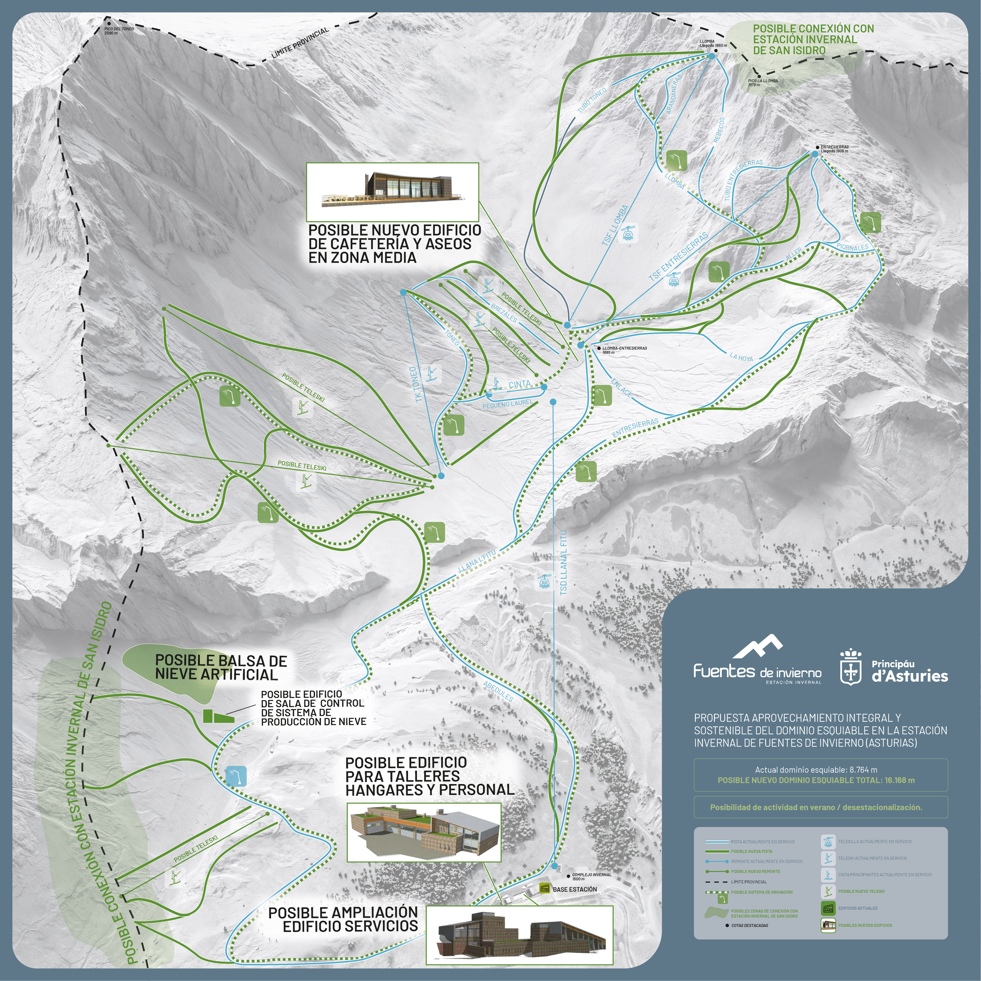 Amás, el documentu contempla la instalación posible de telesquís nuevos, cola mira de desconxestionar les zones de debutantes, ameyorar la movilidá interna y facilitar la conexón cola estación de San Isidro, nel marcu d’una estratexa de cooperación ente Asturies y Llión onde se trabaya permanentemente.