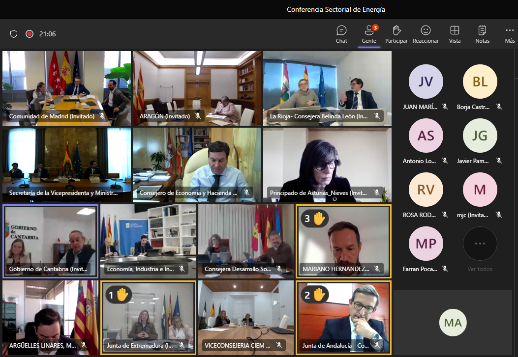 Pie de foto: Un momento de la reunión telemática de la Conferencia Sectorial de Energía celebrada esta mañana, en la que han participado la consejera Nieves Roqueñí y la directora general de Energía, Belarmina Díaz.