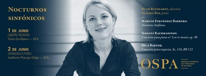 La joven directora Ruth Reinhardt debutará esta semana con la Orquesta Sinfónica del Principado de Asturias (OSPA) para dirigir el décimocuarto programa de abono de la temporada, bajo el título Nocturnos sinfónicos. El pianista Alessio Bax será el solista para un repertorio que incluye piezas de Rachamaninov, Bartok y Marcos Fernández.